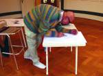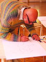 Adam Lude Döring in der Galerie Bayer. Anläßlich des Bietigheimer XXL Tages malt oder zeichnet Adam Lude Döring einen für diesen Tag gemachten Siebdruck zum Unikat.